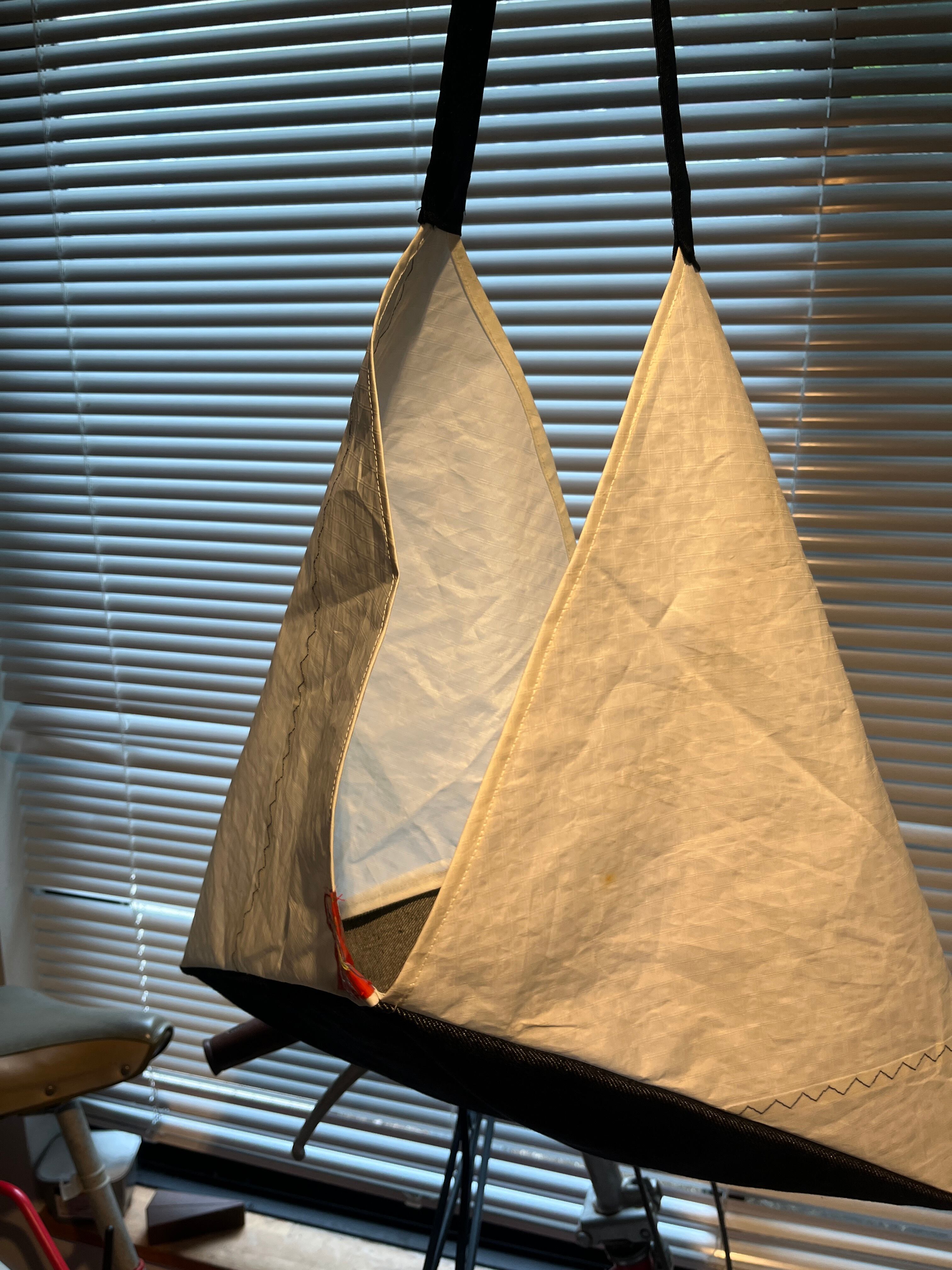 様々な方向から吹く風を受け止めてヨットを進める「メインセイル」を使って丈夫に仕上げました。