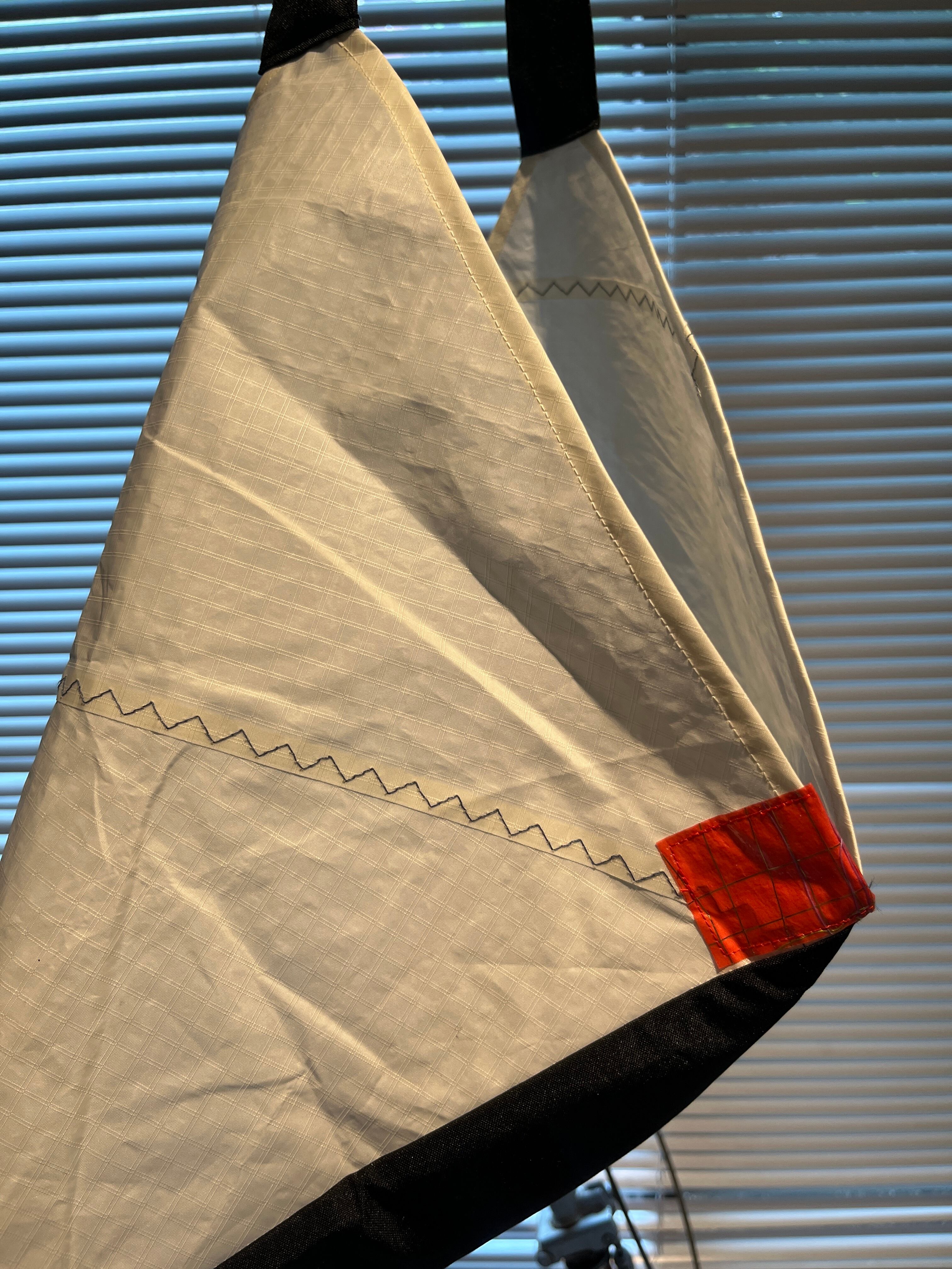 様々な方向から吹く風を受け止めてヨットを進める「メインセイル」を使って丈夫に仕上げました。