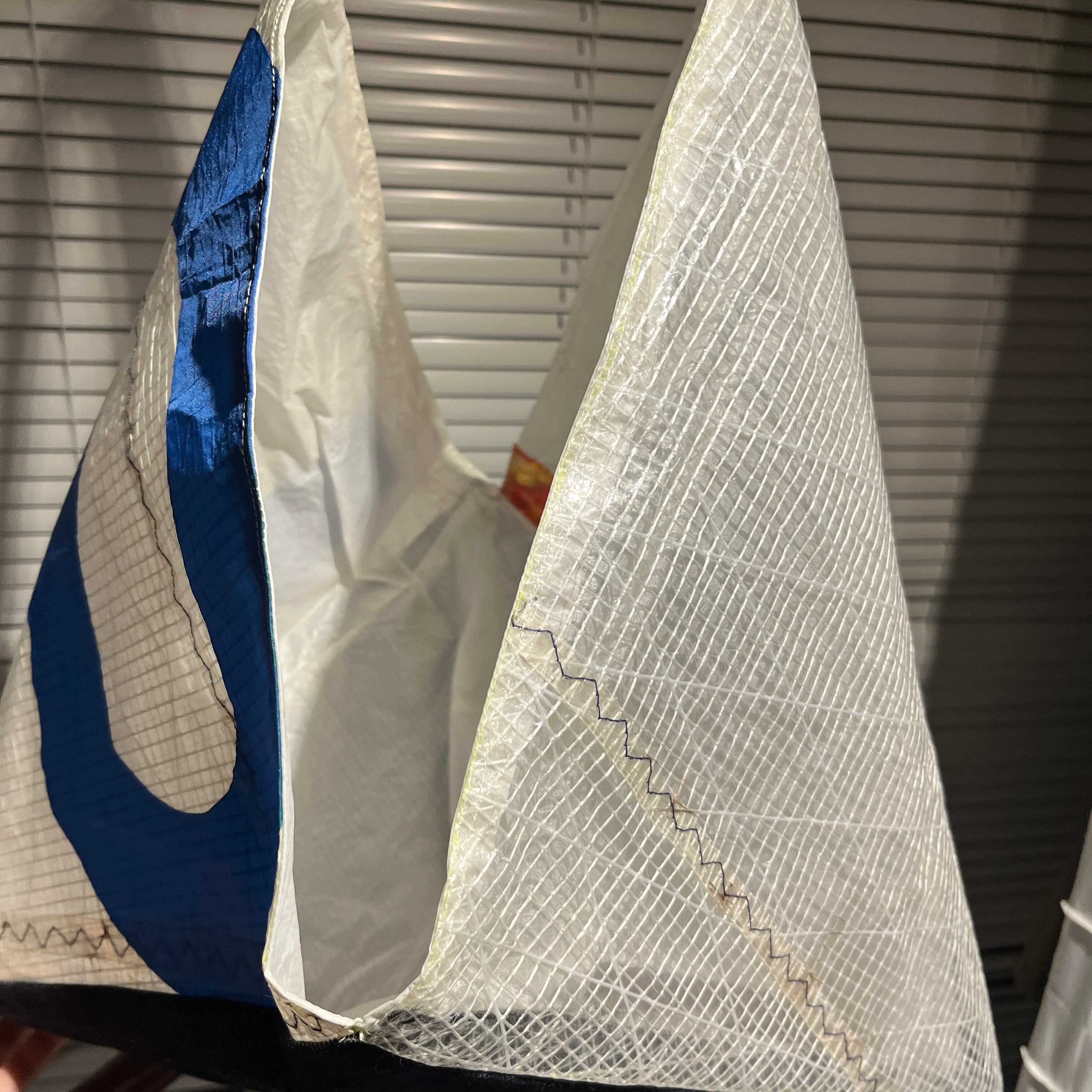 海での役目を終えたセイル生地をアップサイクルしている為どうしても取れない汚れ/シミが残っている場合があります。