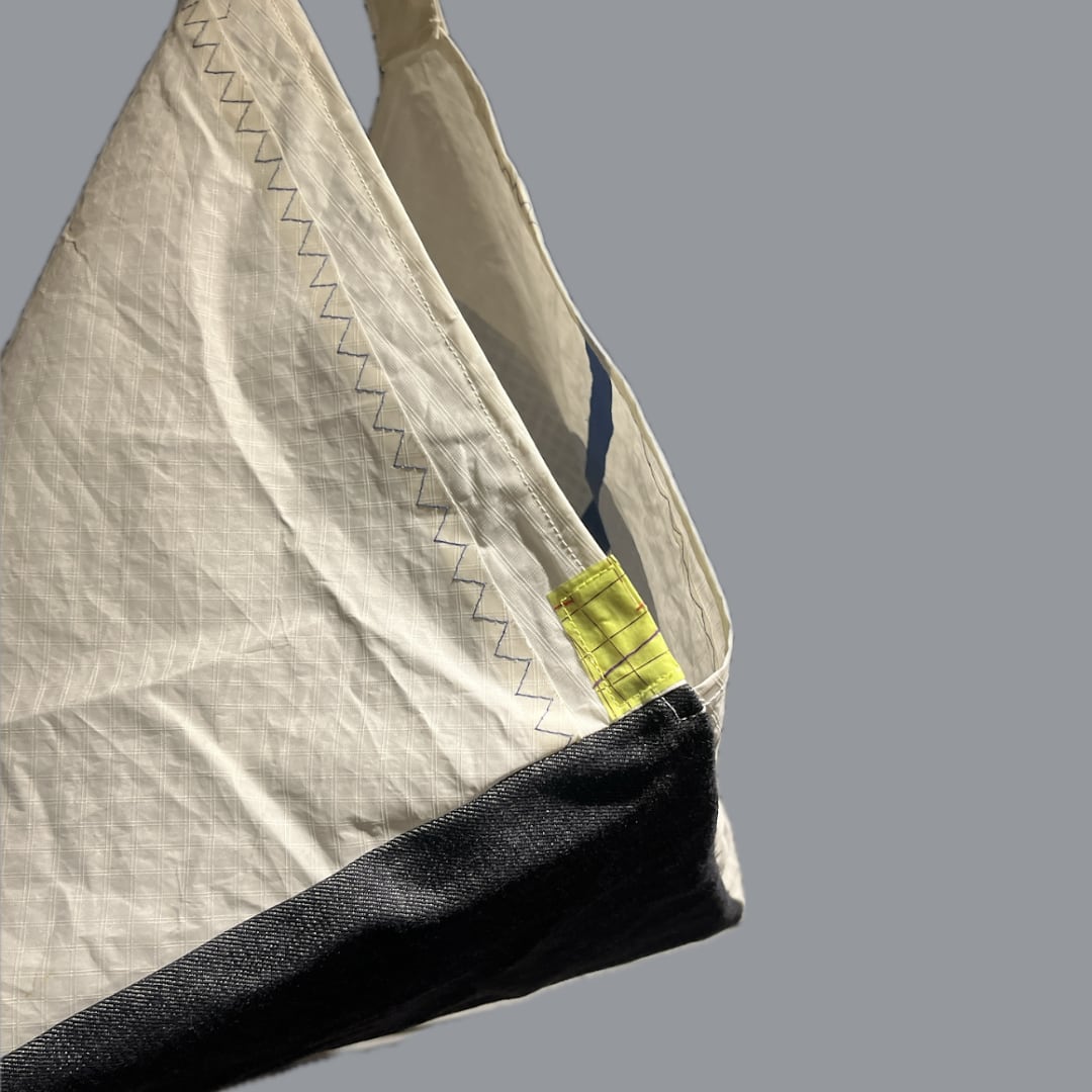 海での役目を終えたセイル生地をアップサイクルしている為どうしても取れない汚れ/シミが残っている場合があります。