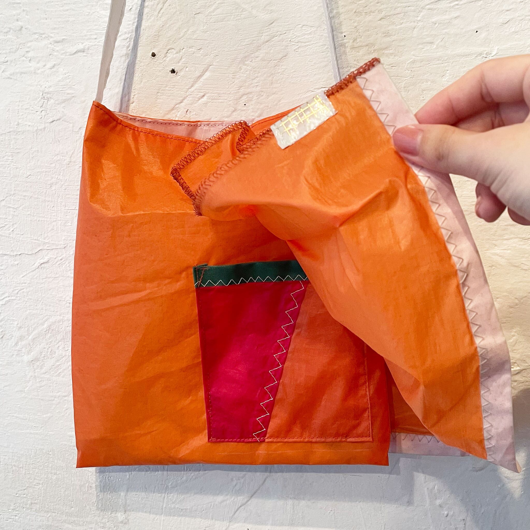 海での役目を終えたセイルが金糸と出会い、カジュアルからセミフォーマルまで幅広くお使いいただけるショルダーバッグに生まれ変わりました。ふわりとなびくフリルが、風を孕んだヨットの帆の面影を感じさせます。リボンのような紐はお好みで結んでショルダーバッグにも、ハンドバッグにも、ウエストポーチにも...