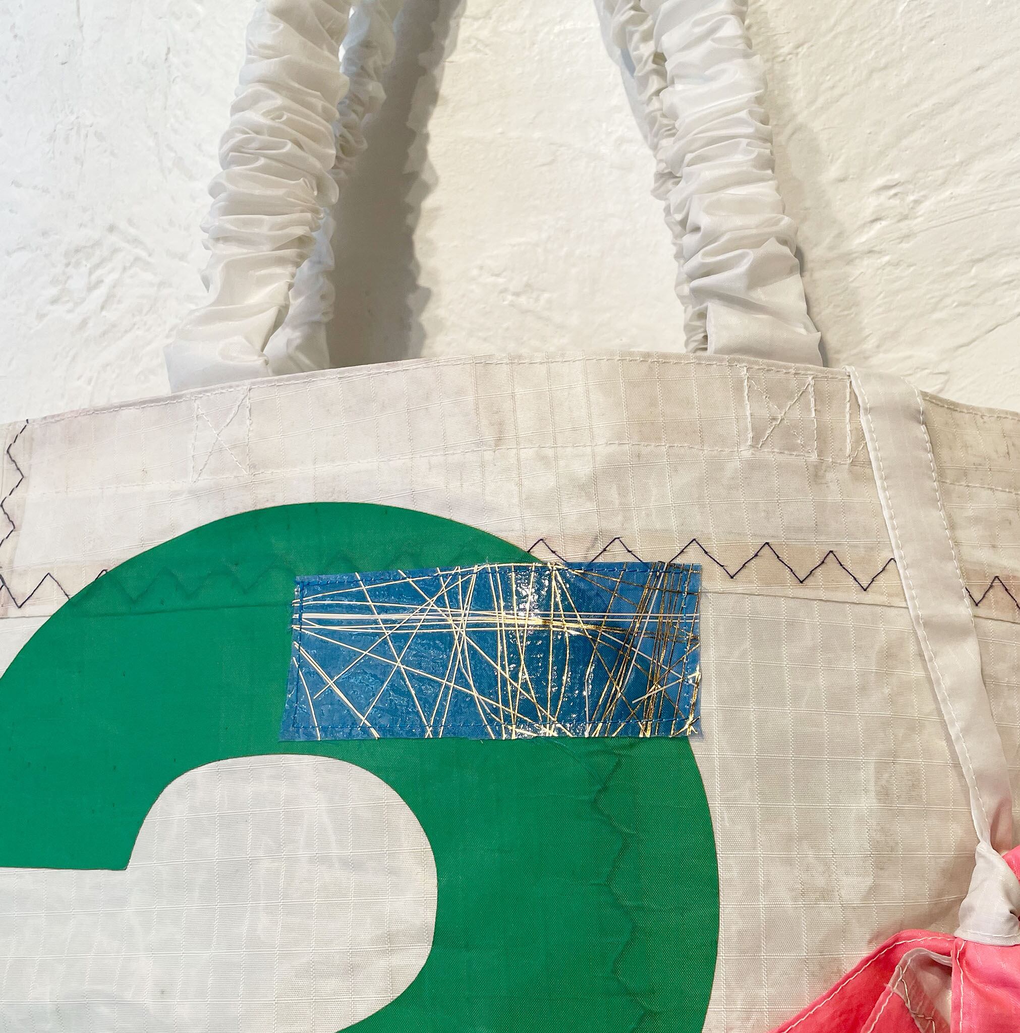海での役目を終えたセイル生地をアップサイクルしている為どうしても取れない汚れ/シミが残っています。