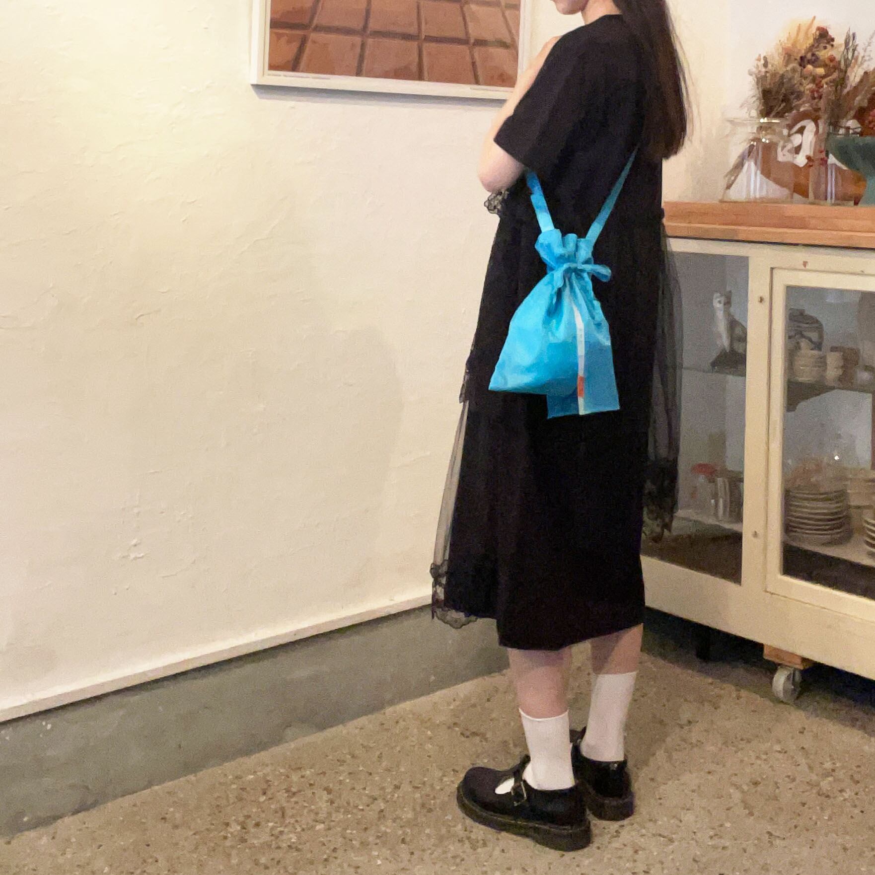 いろいろな持ち方を楽しめるきんちゃくバッグです。