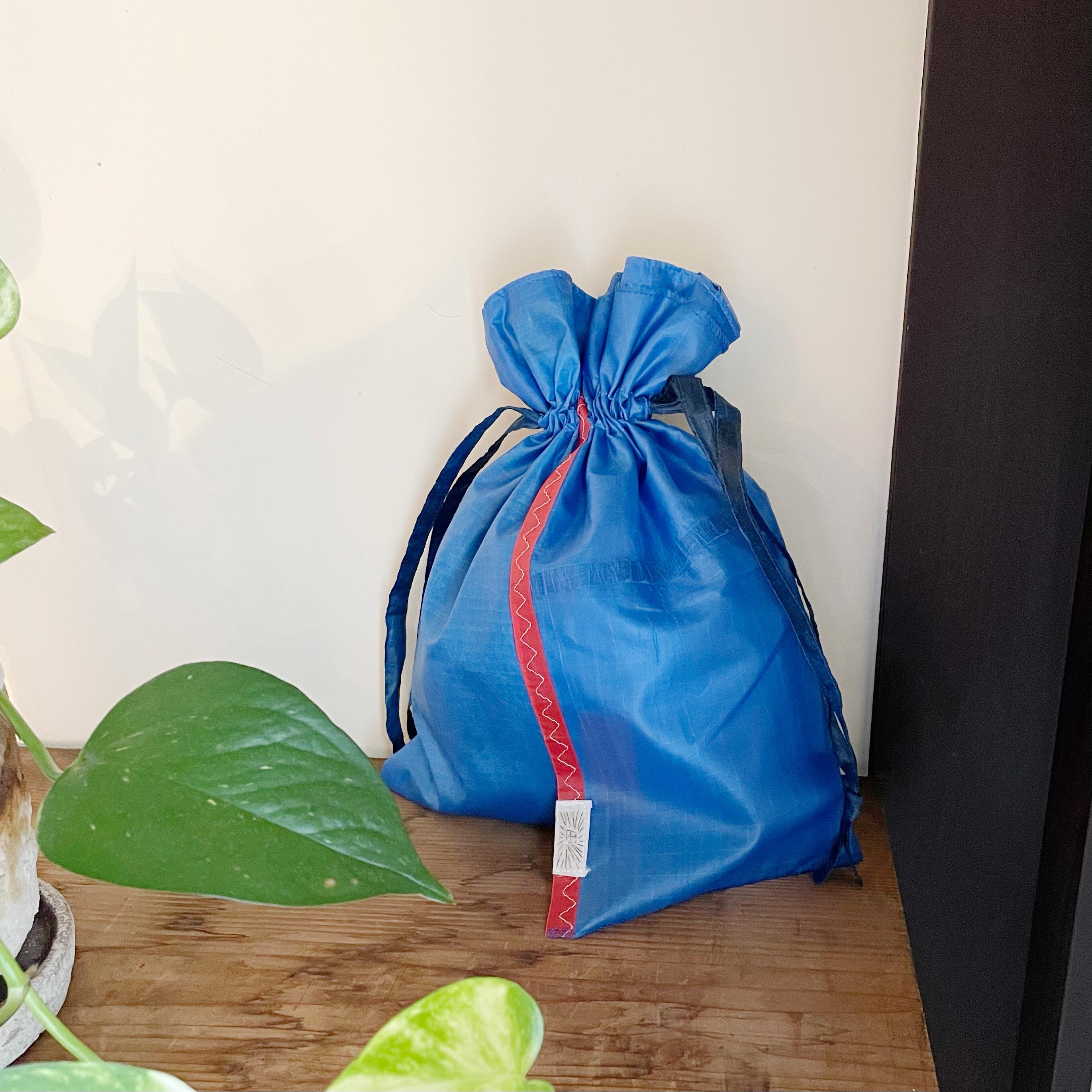 いろいろな持ち方を楽しめるきんちゃくバッグです。