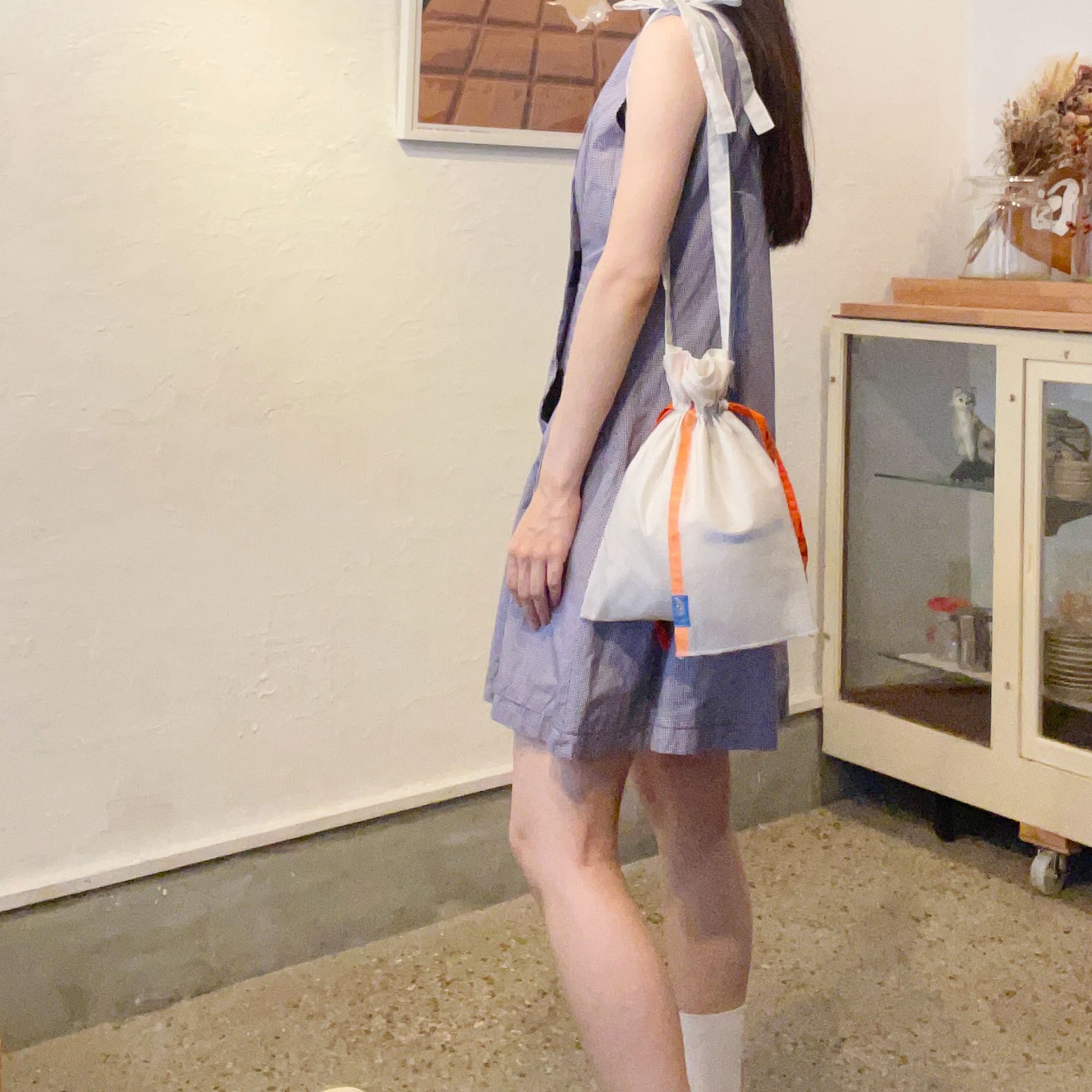 いろいろな持ち方を楽しめるきんちゃくバッグです。