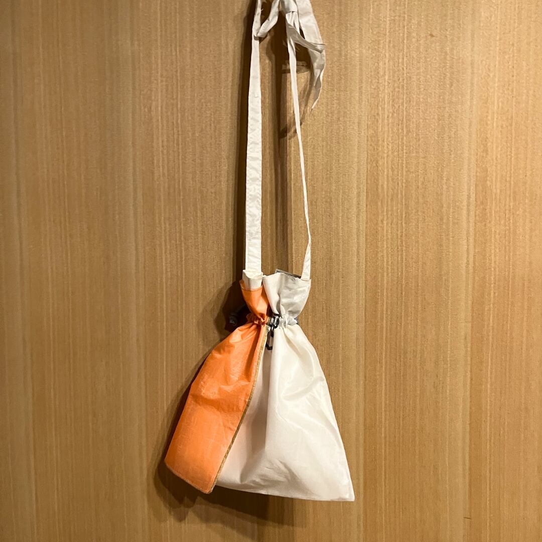 いろいろな持ち方を楽しめるきんちゃくバッグです。